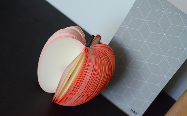 Æblet er en post-it blok som jeg har købt i Illums Bolighus.